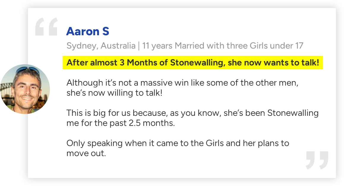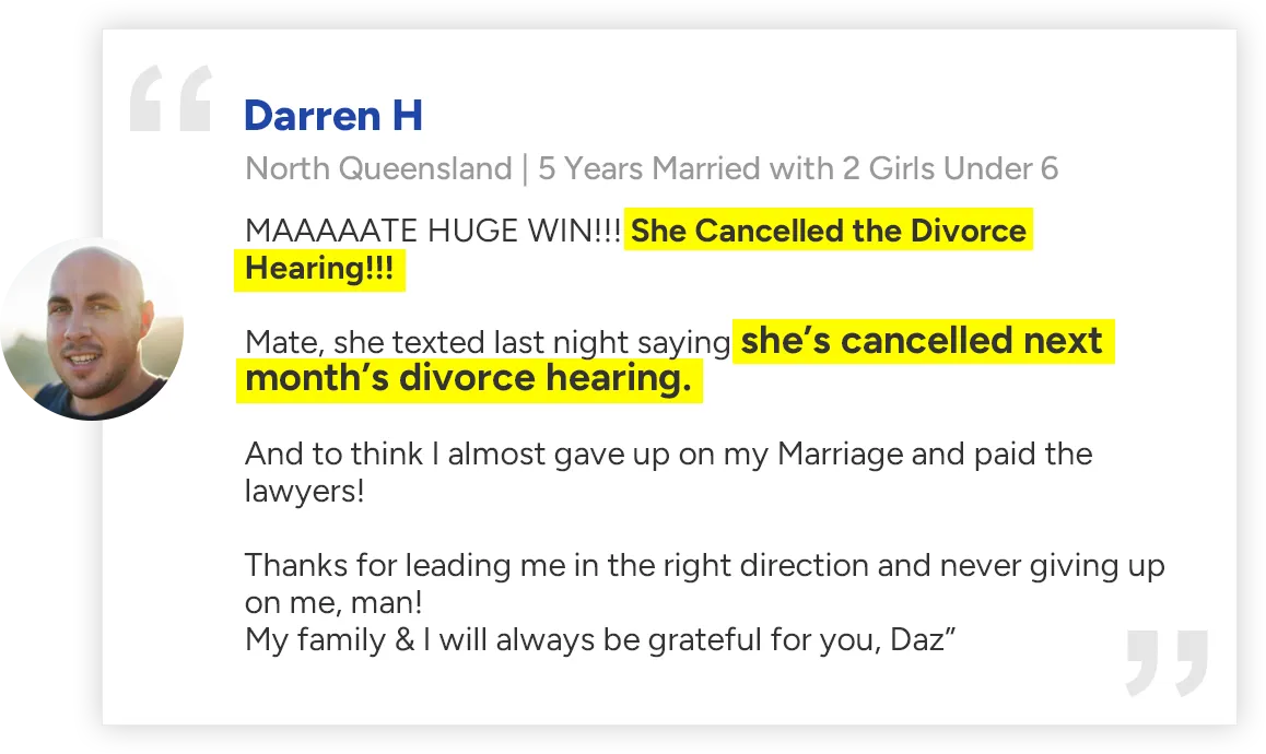2. Around 60% of the men we speak with in the private sessions, like the recovery plan and how the Formula works so much that they want and need our help to get their wife back and avoid divorce.